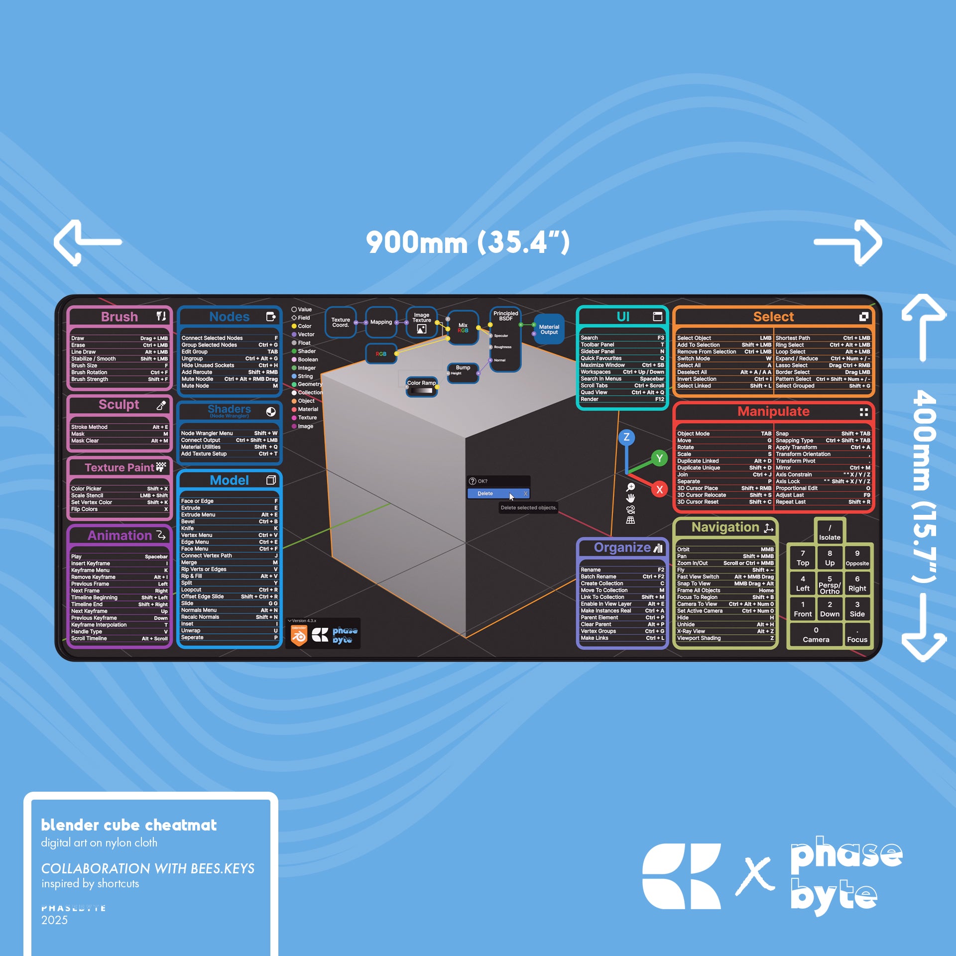 ![[PRE-ORDER] Blender Cube CheatMat - Bees.Keys X PhaseByte](http://phasebyte.ca/cdn/shop/files/Dimensions-DefaultCube.jpg?v=1740724664&width=1445)