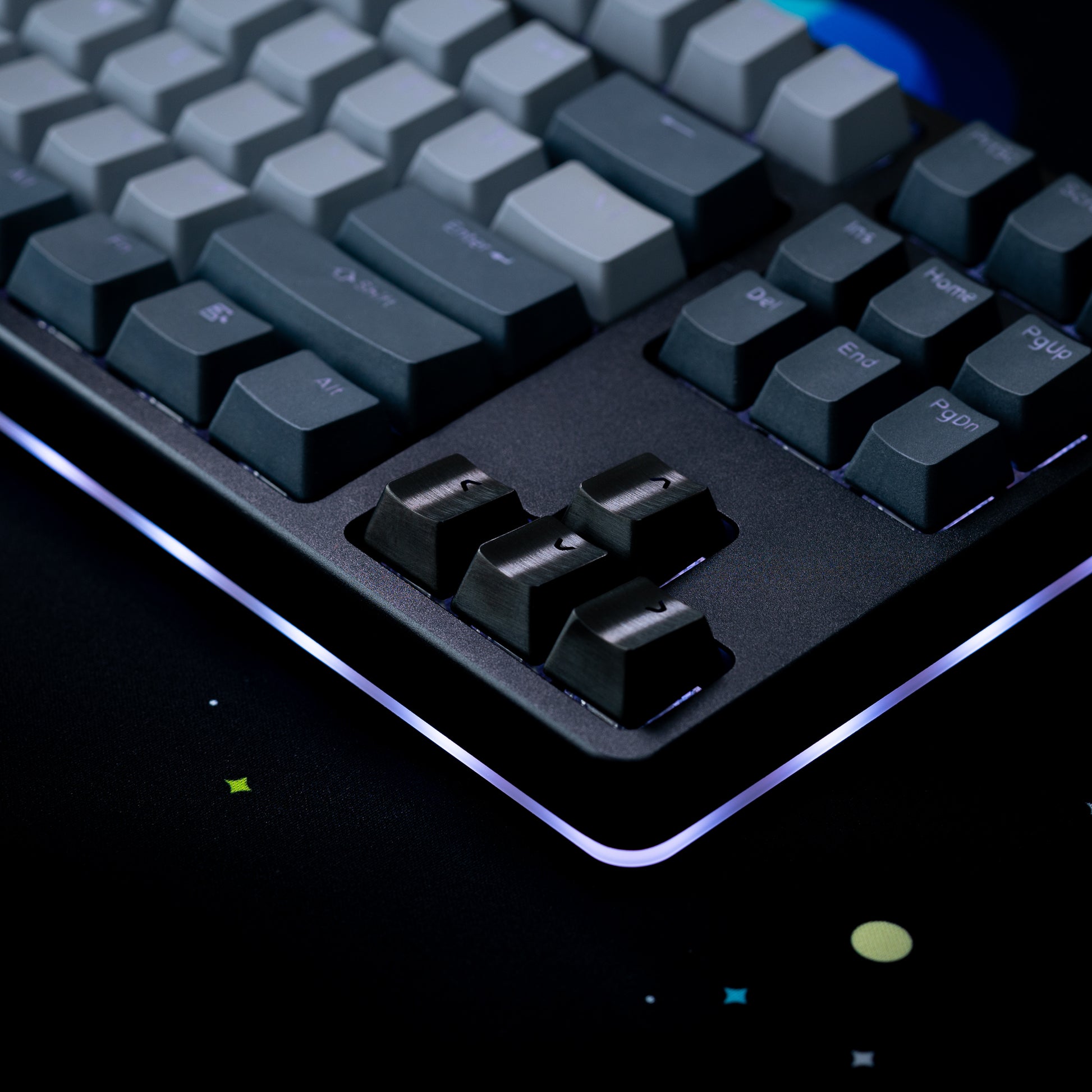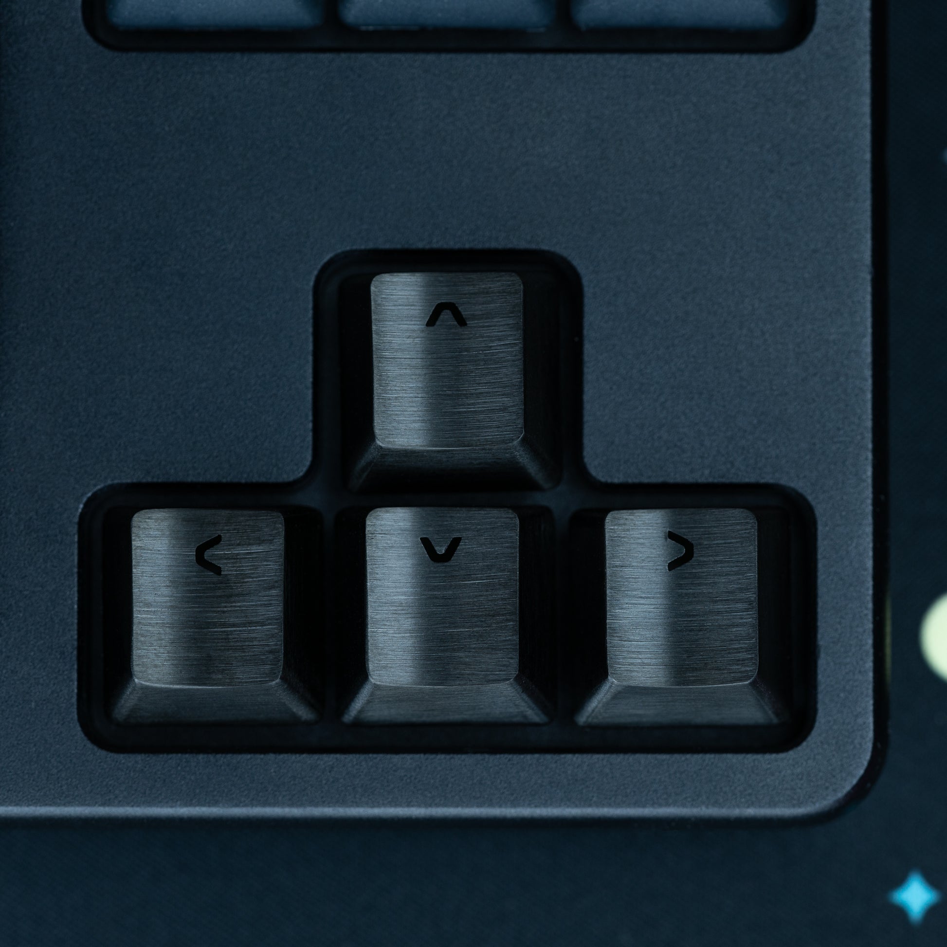 Keep it minimal. A set of four gunmetal stainless steel arrow keycaps. Compatible with any cherry style switch, simply swap them with your old set for stunning addition to your keyboard.