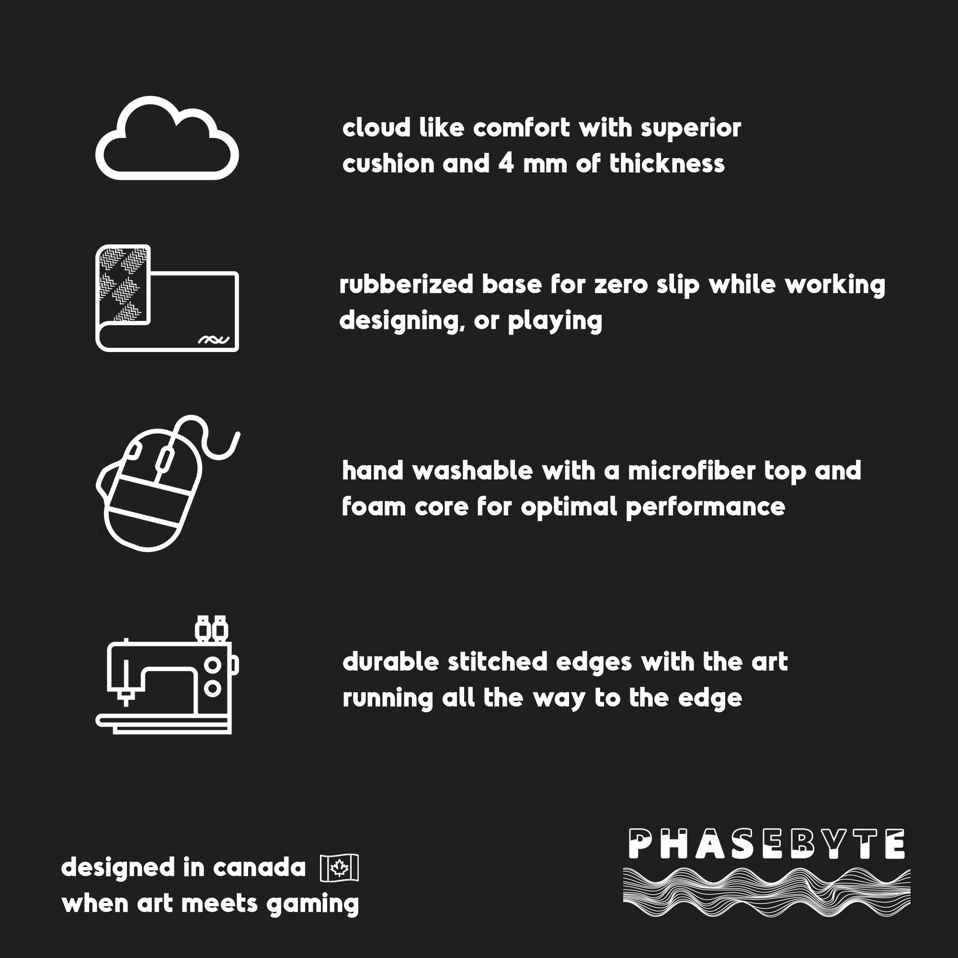 With superior foam core cushion and a total of 4mm of comfort, your wrists will be right at home on any mouse pad.