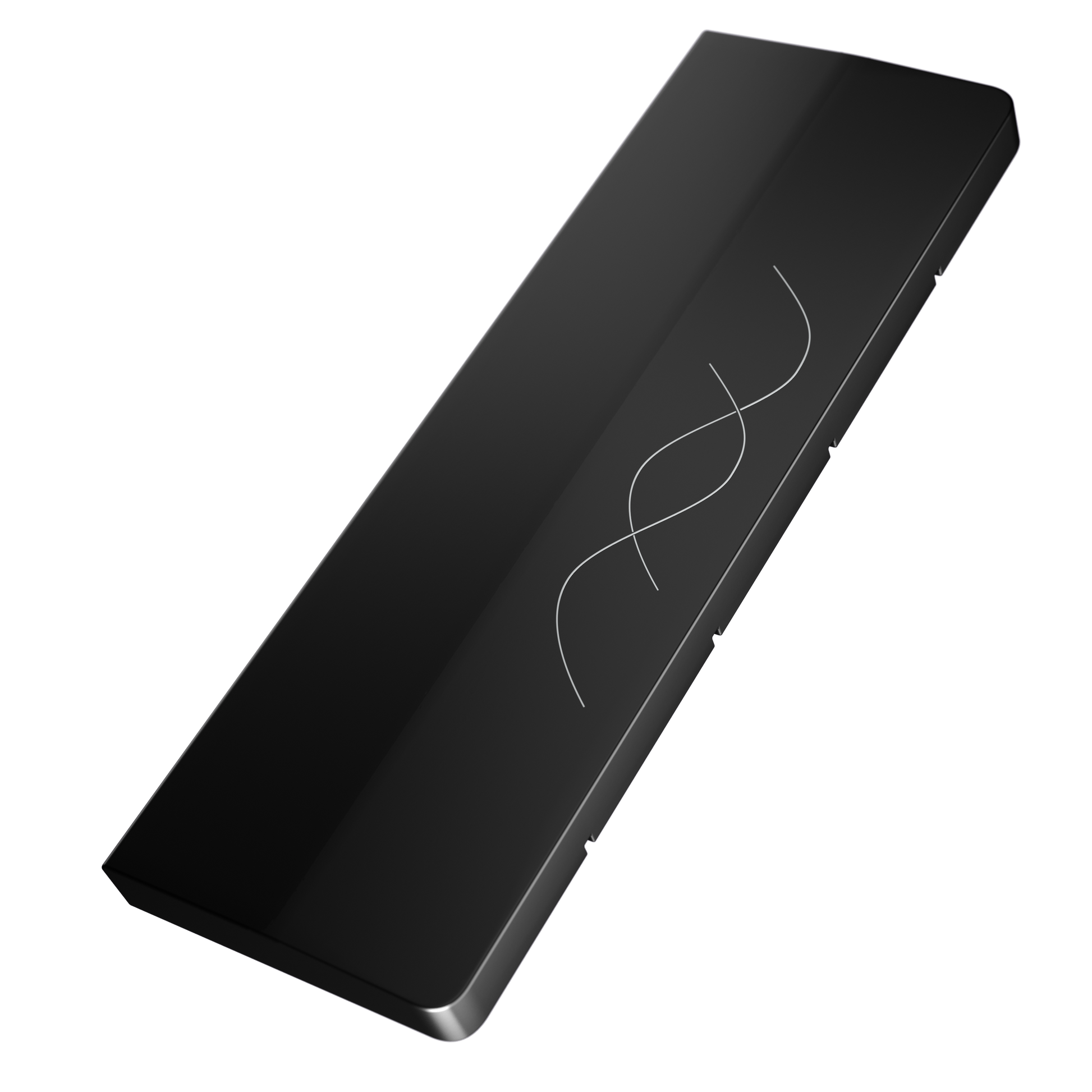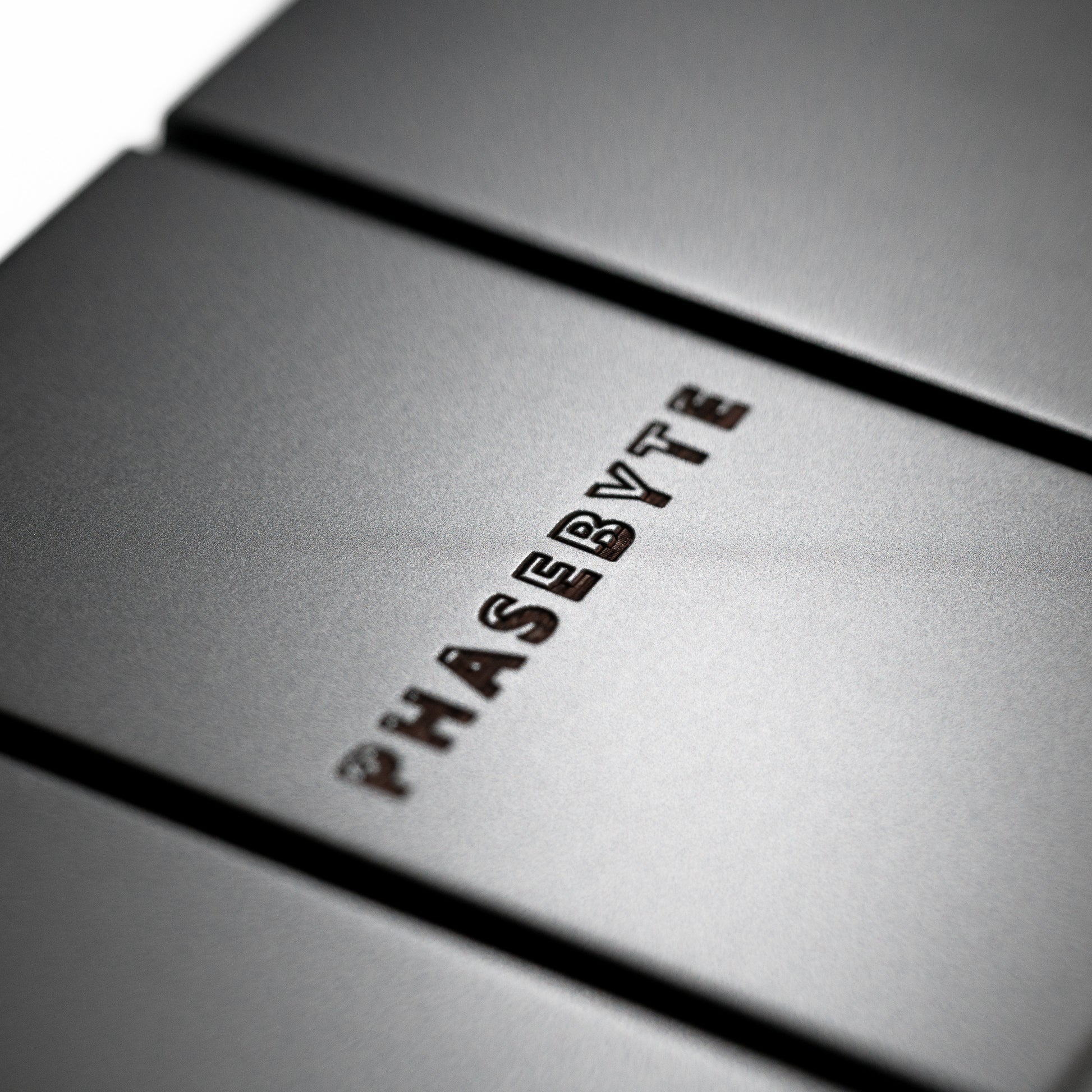 The wrist rest is cut from a single piece of solid wood and sanded to its ergonomic dimensions. The space for the inlay is carefully machined out, leaving room for an artisan to lay an 0.999 sterling silver wire in the PhaseByte motif. After painting, the inlay is placed and polished before resting in its limited edition box.