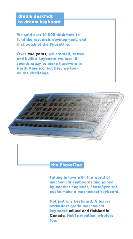 We sold over 10,000 deskmats to fund the research, development, and first batch of the Phase One.